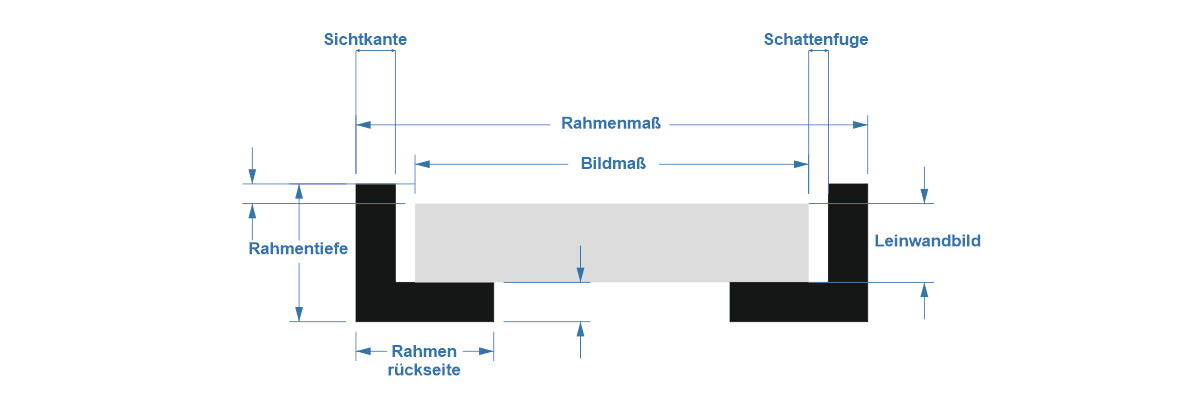Das Rahmenprofil umrandet das Bild mit einem Abstand von circa 5 mm. Dadurch entsteht zwischen Bild und Rahmen ein Freiraum: die namensgebende Schattenfuge.